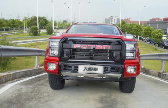 福田大將軍的顏值出眾是眾所皆知的事實,近兩米寬的高挑車身搭配碩大的前格柵沖擊力非常強,前大燈炯炯有神、剛勁硬朗,搭配FOTON字母標識前臉,具備歐美大皮卡風范。寬體輪眉的設(shè)計也讓車身整體輪廓更具侵略性,全車線條銳利剛硬,使得整車視覺效果更加高端出挑、極富力量感。
