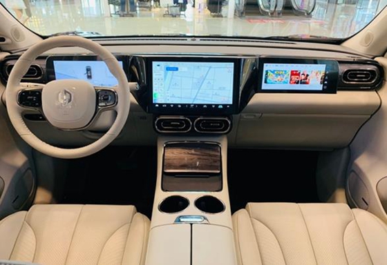 零跑C11的內飾設計主打豪華范,環(huán)繞式座艙加上T型中控區(qū)域,給人以兼具簡潔、科技和未來感的第一印象。當然C11的內飾用料也優(yōu)于該品牌以往產品的表現,在座椅、方向盤及門板等容易觸及的部分,大面積使用Nappa真皮和麂皮絨進行包裹覆蓋,質感親膚細膩,使用體驗舒適。從視覺和感官雙維度提供乘員豪華感,對于零跑這個品牌來說是很大的進步。