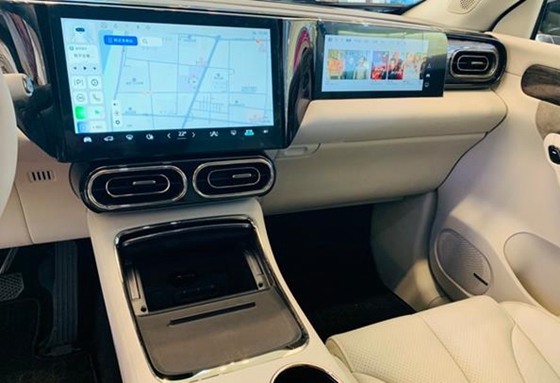和目前很多新勢力造車品牌一樣,零跑C11也配備了三聯(lián)屏,分別由10.25寸的儀表屏、12.8寸的中控車機屏和10.25寸的副駕娛樂屏組成,分辨率分別為1920720、19201080、1920720。三塊屏幕可以實現互動功能,可實現飛屏傳遞互推,讓信息、娛樂、導航、影視等分享變得更方便。此外,在零跑S01、零跑T03上使用的人臉I(yè)D自動適配功能也被沿用,不過C11的功能更為豐富,除了可以實現外后視鏡、座椅記憶、空調、駕駛模式的自動識別與適配,未來可升級拓展如音樂歌單、氛圍燈等適配記憶功能。